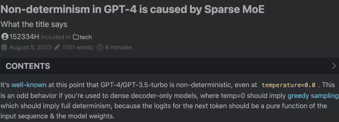 更令人惊讶的可能是,即使我们将temperature降至0(从而使采样在理论上是确定性的),LLM API在实践中仍然不是确定性的。