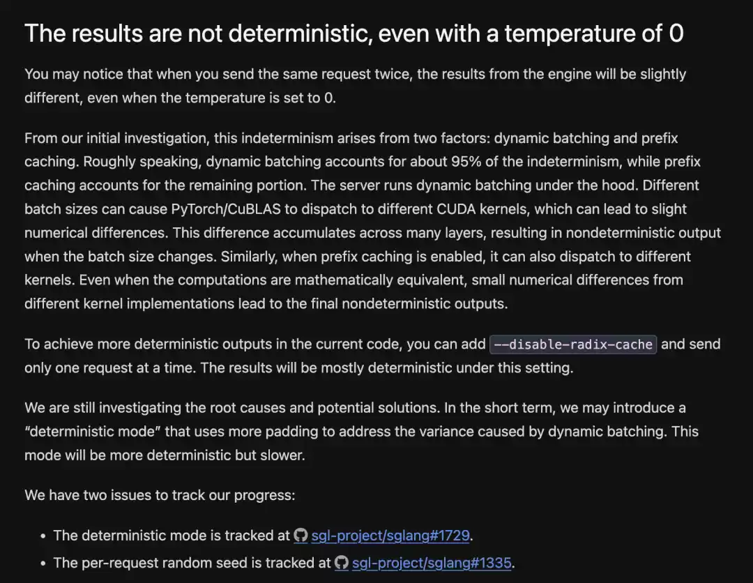 即使在自己的硬件上,使用像vLLM或SGLang这样的开源推理库运行推理,采样仍然不是确定性的。