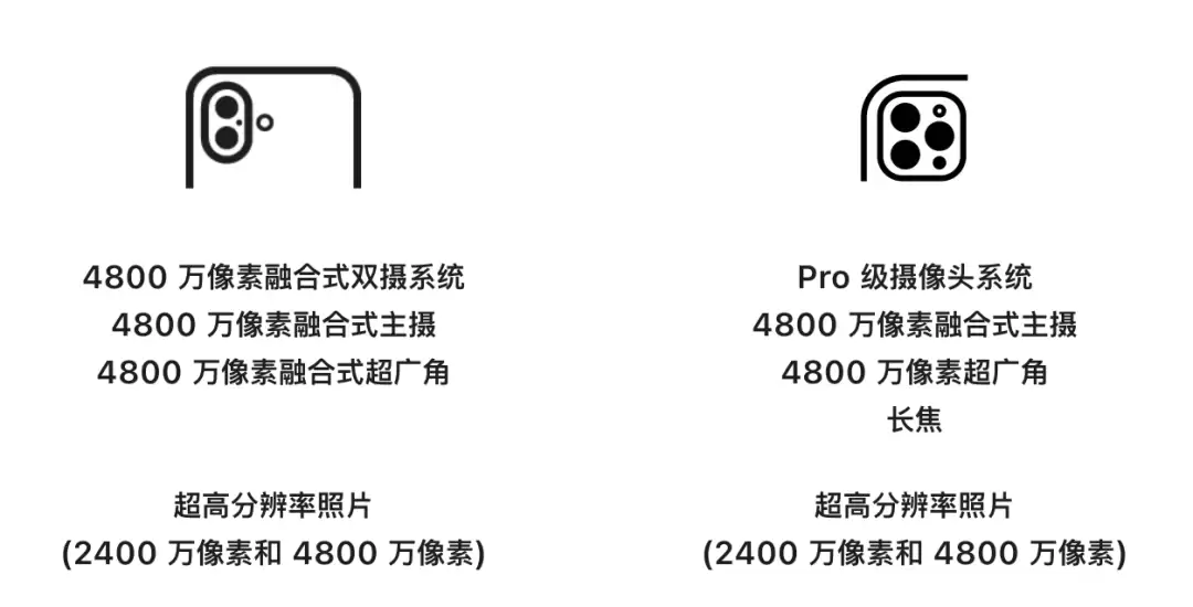 后摄的超广角镜头,从 iPhone 16 的 1200 万像素升级到了 4800 万,终于实现了双背照 4800 万像素