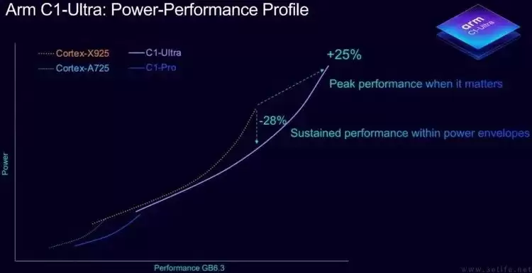 比如他们声称,与前代“超大核”Cortex-X925相比,C1-Ultra的IPC(单时钟周期性能)提升了12%,微架构性能表现提升了26%。