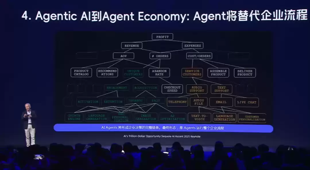 当Agent有了计算、思考、规划、行动等能力后,其就会替代企业流程。现在Agent所取代的是企业过去给人所设计的流程,未来,企业必须为Agent重新设计整个流程,或者让Agent重新定义工作流程。这是人与机器关系改变的推动力。