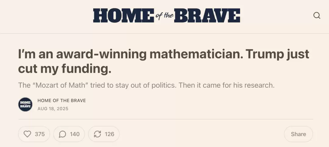 陶哲轩自己也提到,NSF的资助让研究生能暂停一个学期的教学工作,专心科研;还能负担他们去参加会议,建立学术联系。经费一旦断裂,这些最基础的科研养分就会消失。