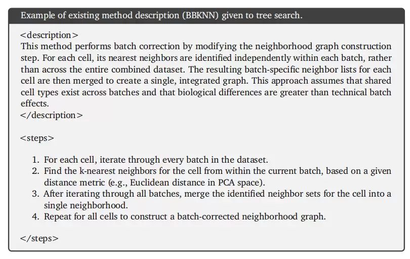 BBKNN 的方法描述示例。研究人员将其输入系统,AI 在此基础上进行改写和优化