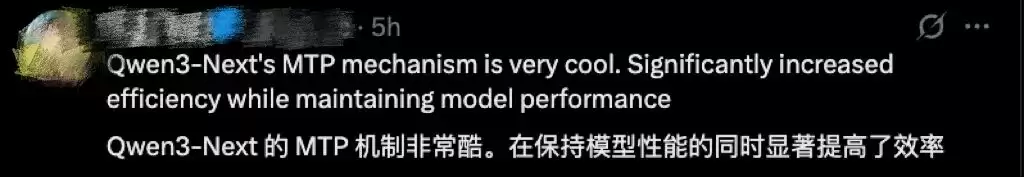 开发者在Qwen的X评论区称赞其新增的多Token预测(MTP)机制,称这是最令人印象深刻的部分。