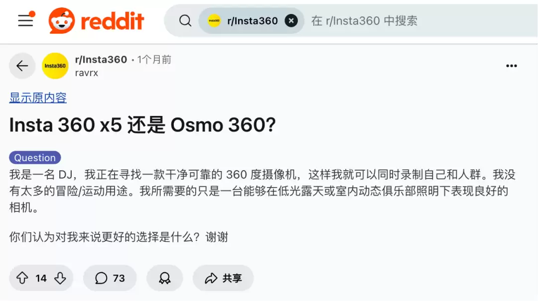 作为一款亮相仅月余的新产品,在Reddit等社媒平台可以看到不少用户将其与Insta360 X5进行直接对比,也收获了大量认可与好评。