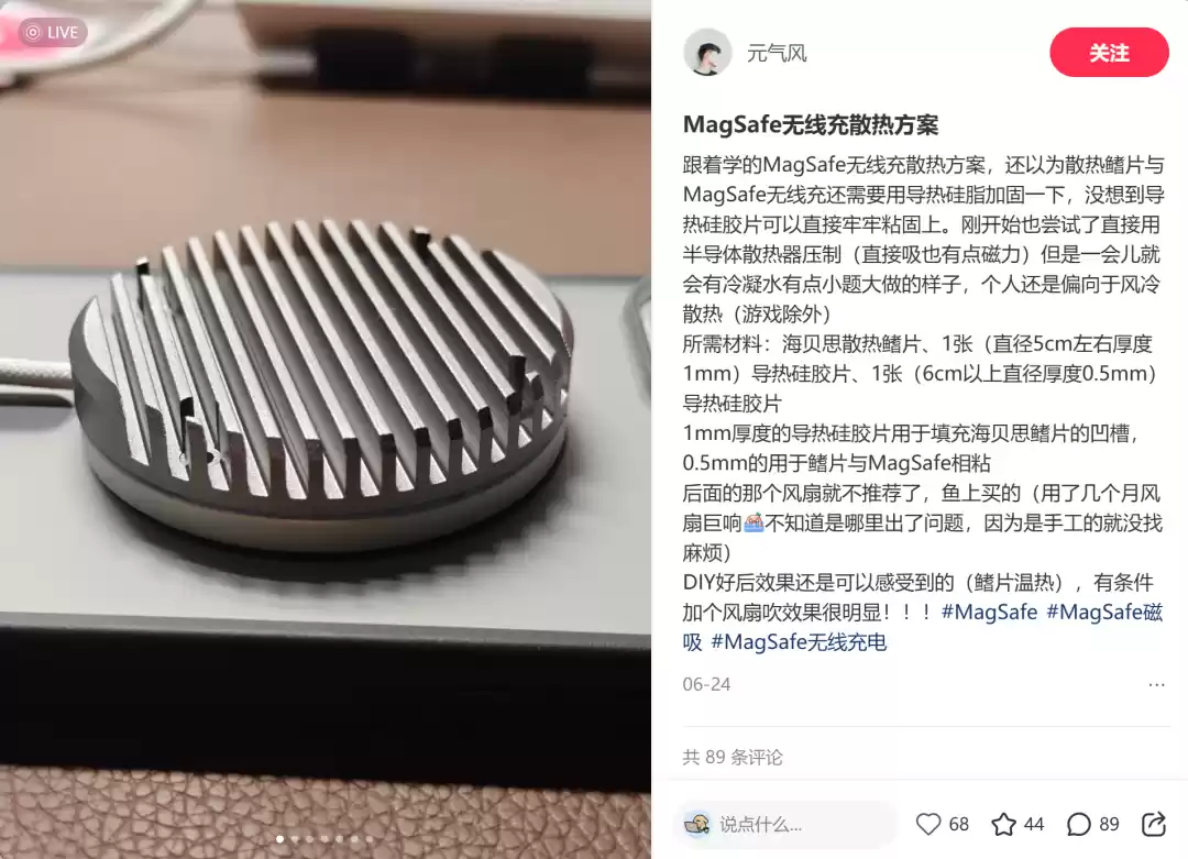 小红书上有大量自制的 Magsafe 散热方案
