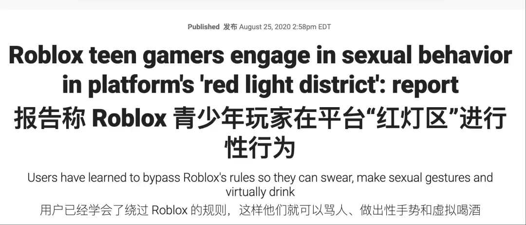 相比较这些虚头巴脑的东西,不少人发现 Roblox 有一个致命的问题,那就是儿童安全问题。