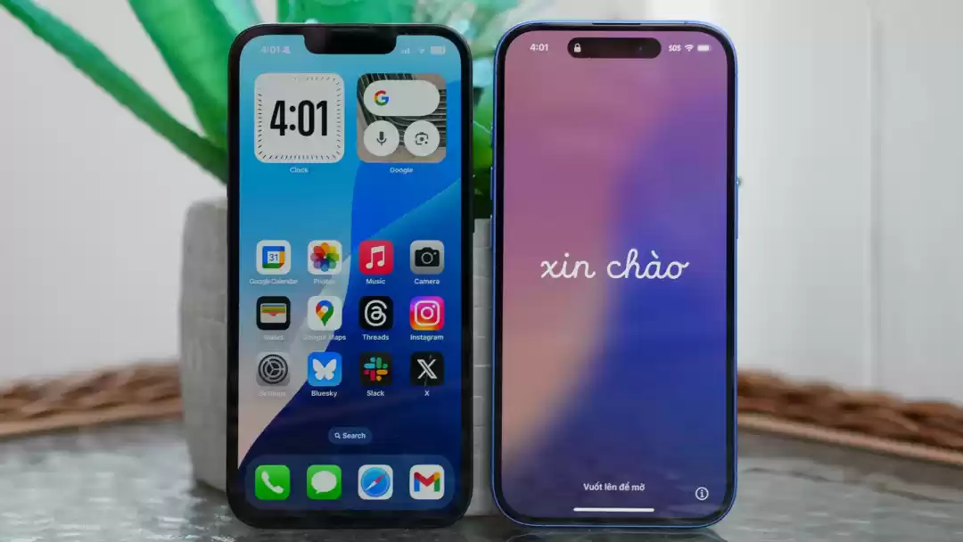 iPhone 16e(左)与iPhone 16(右)