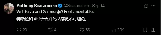 上周日,天桥资本(SkyBridge Capital)创始人Anthony Scaramucci的一条推文,为这本已滚烫的预期再添了一把烈火。他直言:随着马斯克加速将AI整合到其商业版图中,特斯拉与xAI的合并“感觉不可避免”。