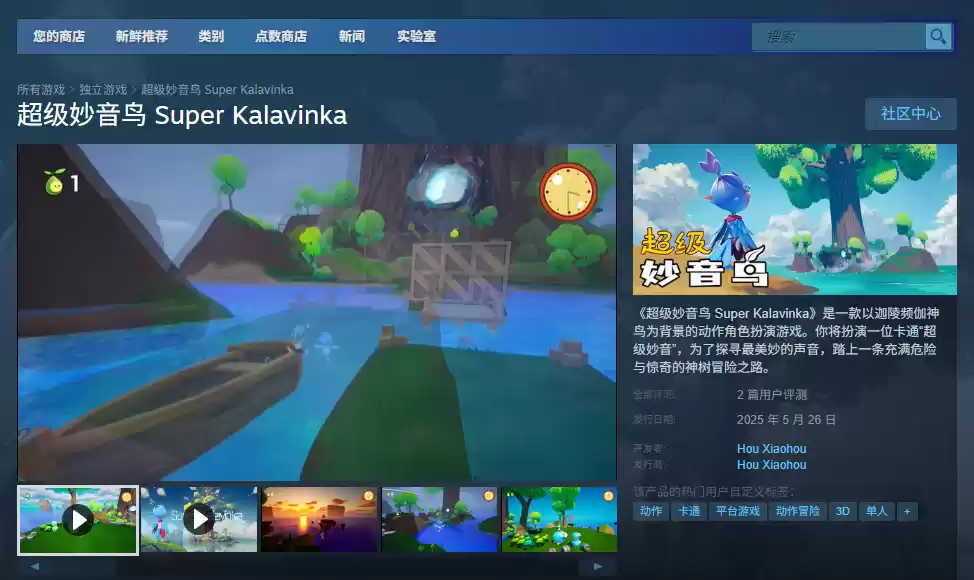 Steam平台需要先安装Steam平台,之后注册一个账号登录,然后搜索“超级妙音鸟 Super Kalavinka”进入商店购买页面。