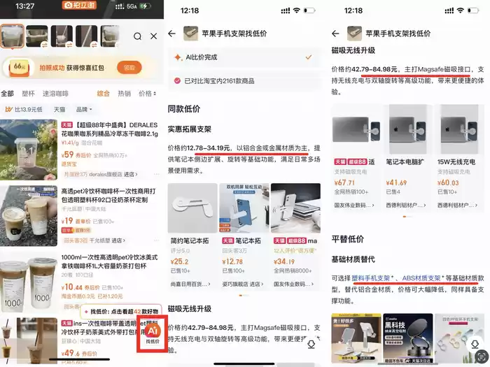 值得关注的是,淘宝AI推荐机制强调公平性与开放性。界面新闻了解到,拍立淘“AI找低价”功能依托全网知识推荐平替商品,避免偏向性,目前尚无商业化考量。