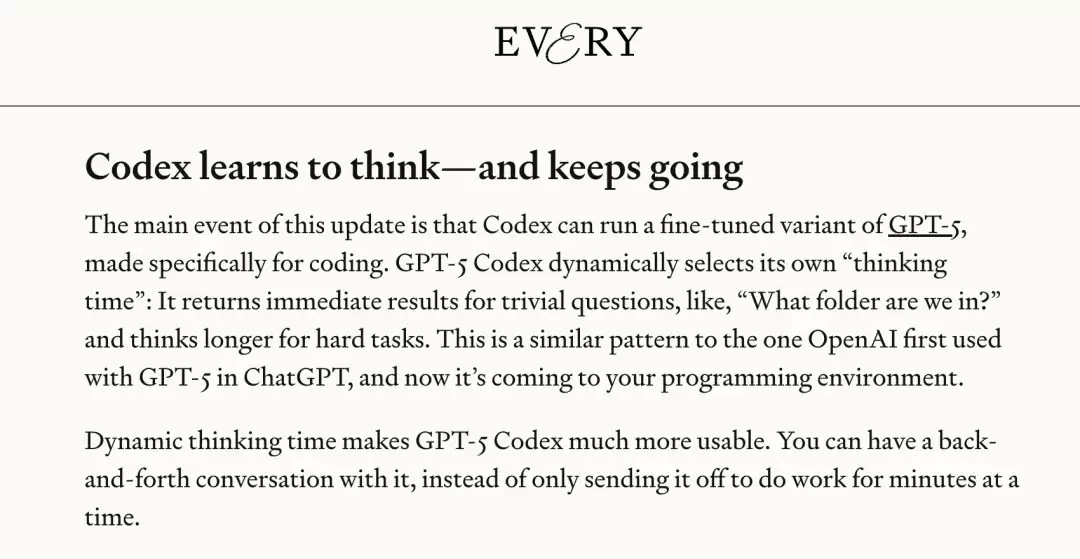 与GPT-5任务一开始就决定用多少算力的“路由机制”不同,GPT-5-Codex能在执行任务的过程中实时调整,可能在处理一个问题5分钟后,AI突然意识到还需要再花一个小时。