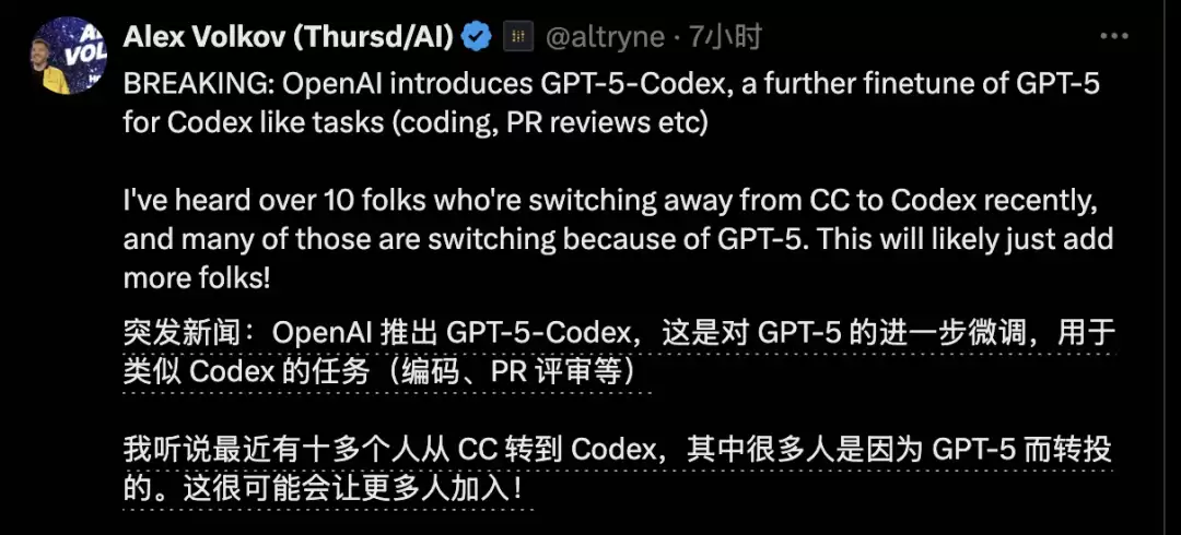 OpenAI立马趁火打劫,升级成GPT-5版本,真刀真枪来抢AI编程市场了。