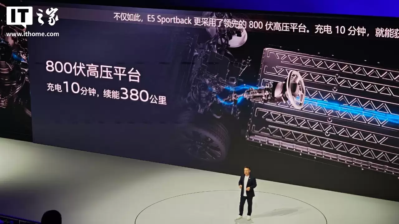 车型尺寸为4881×1960×1479mm,2950mm超长轴距。动力系统提供单电机(220/300kW)与双电机(386/579kW)版本,0-100km/h加速最快仅需3.4秒。800V高压平台配合100kWh大容量电池组,CLTC工况续航达773公里。