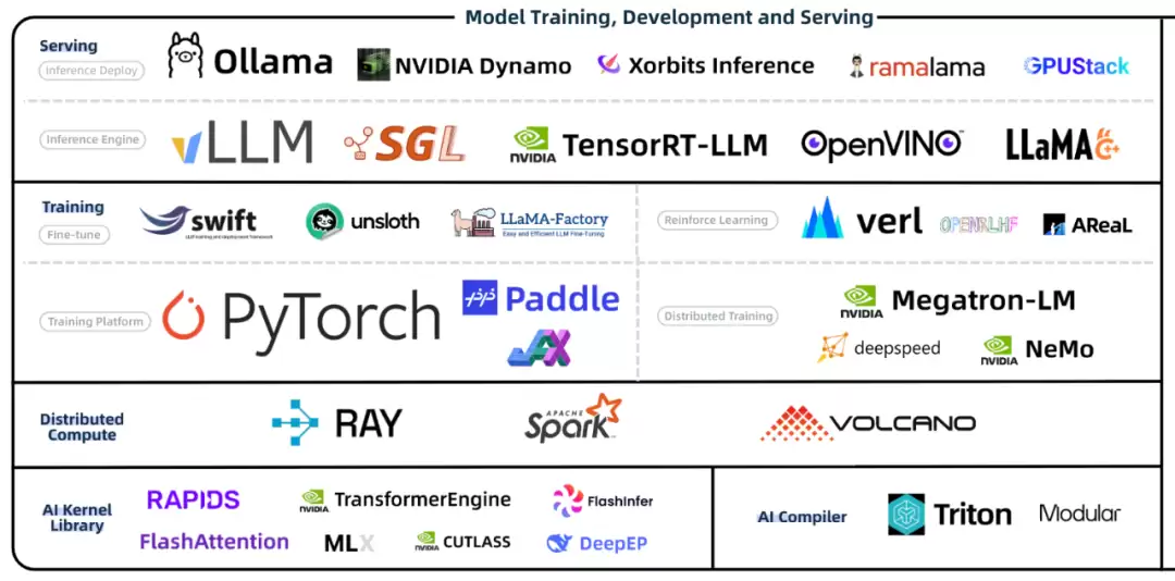 vLLM、SGLang等云端推理方案仍是主流,NVIDIA等大厂持续加码。同时,ollama等轻量化方案让大模型得以在普通终端设备运行。