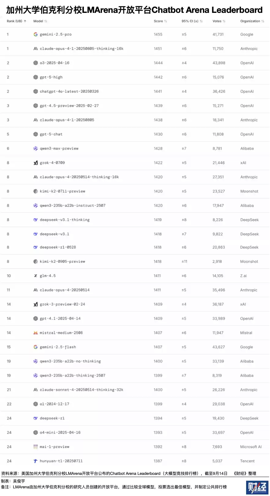 截至9月14日,美国加州大学伯克利分校创办的LMArena开放平台长期对全球大模型进行性能测试,并更新Chatbot Arena Leaderboard(大模型竞技排行榜)。腾讯的混元TurboS今年5月一度位居全球第8。截至9月14日,腾讯的混元T1-20250711位居全球24。