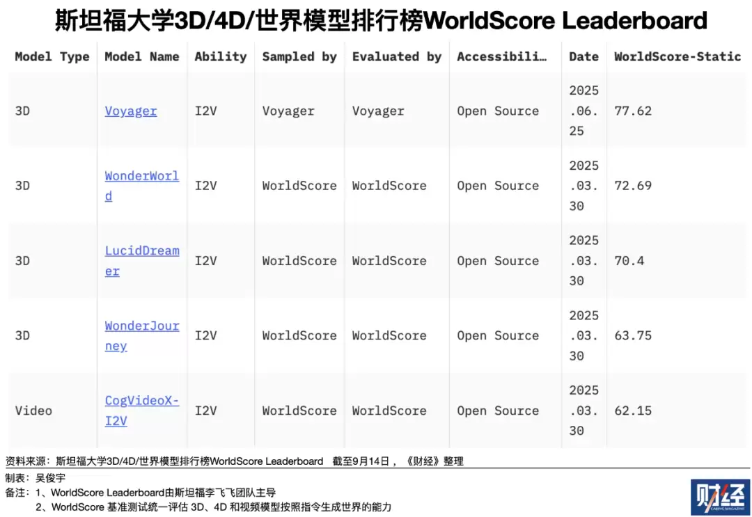 在斯坦福大学3D/4D/世界模型WorldScore Leaderboard排行榜中,腾讯的混元World-Voyager位居全球首位。这一模型能力领先,和腾讯长期从事游戏业务密不可分。