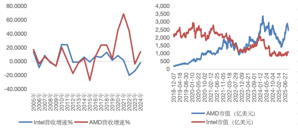 这一困境恰与英特尔当年的战略失误遥相呼应。2014年遭遇10nm研发布局后,英特尔固守原有创新节奏导致14nm工艺"缝缝补补"四年之久,最终被借助台积电先进制程的AMD弯道超车。2019年AMD在PC市场占有率突破30%,2024年市值更一骑绝尘,如今已是英特尔市值的2.5倍。