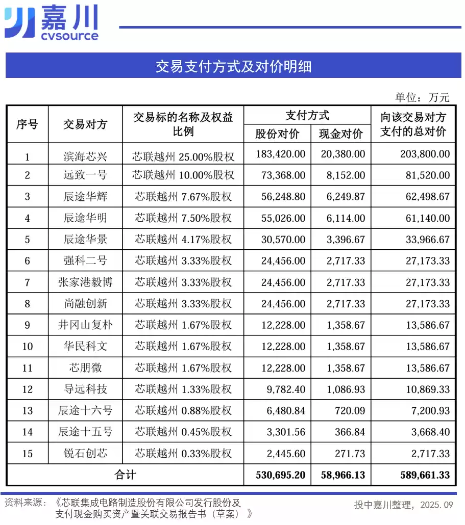 8月8日,芯联集成公告宣布,已以58.97亿元发行股份+现金方式,收购15名股东手中芯联越州72.33%股权,一举将后者收为全资子公司。