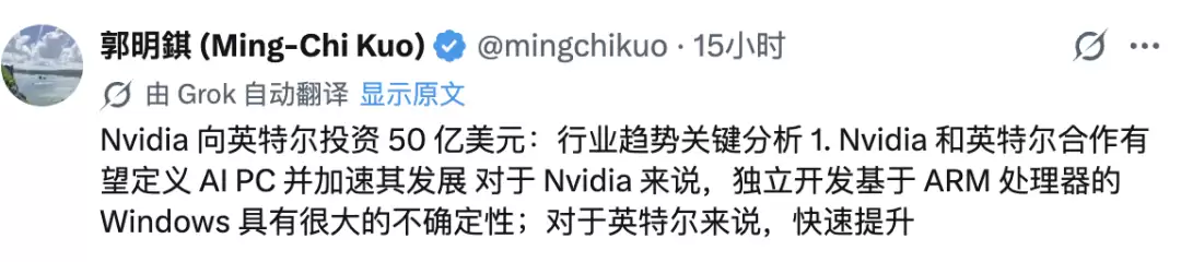 分析师郭明錤评价:"这次合作可能重塑AI PC产业格局。"数据显示,随着战略调整,英特尔已陆续出售Altera等非核心业务,专注提升核心竞争力。