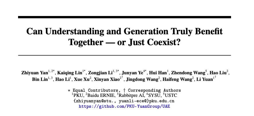 但最近,北大的一篇最新研究《理解与生成能真正互利,还是仅仅共存?》提出了一个名为UAE的全新框架,为这个问题提供了另一个解法。