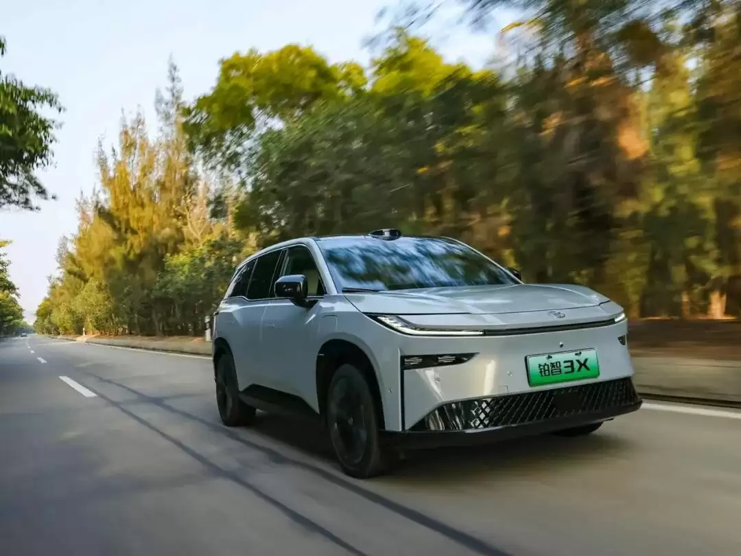 据悉,铂智3X并非基于丰田e-TNGA纯电平台打造,而是与埃安霸王龙一样,基于广汽集团的GEP平台开发。两款车共享车身架构和核心尺寸,在设计细节如腰线、充电口布局等方面极为相似。