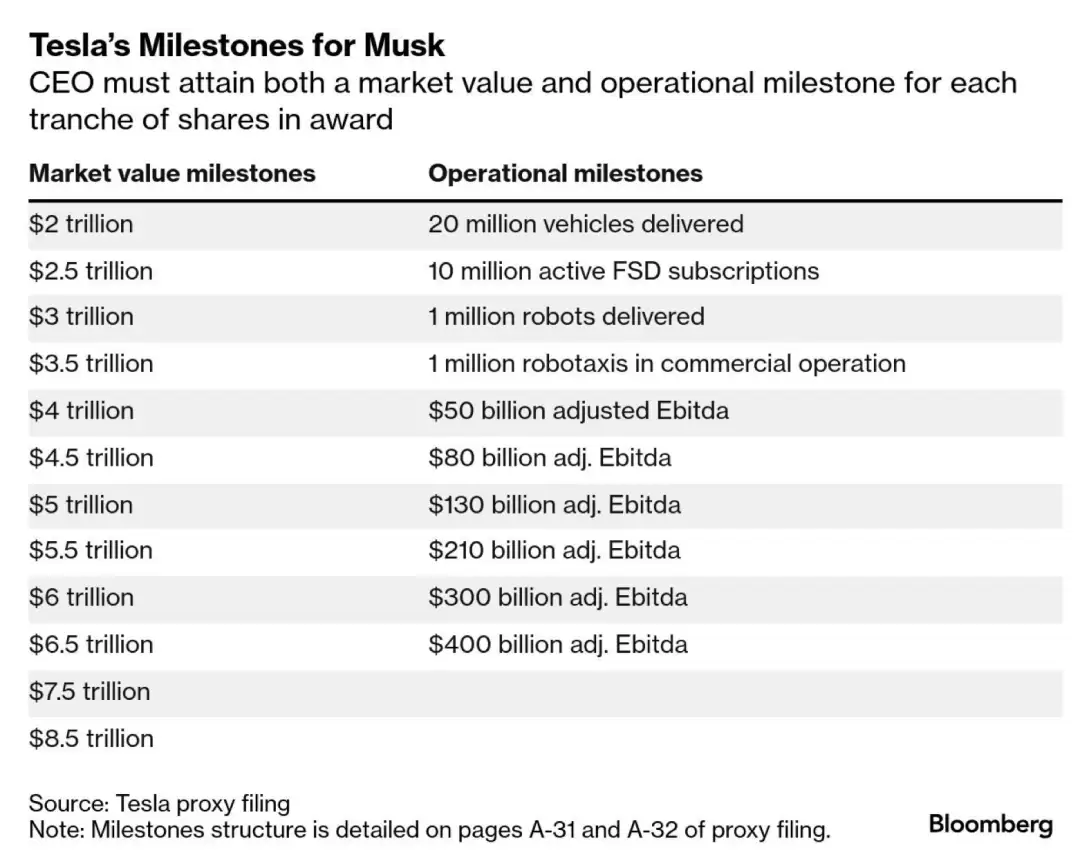 马斯克几乎从来不按常理出牌,正如最近特斯拉董事给马斯克开出1万亿美元的薪酬方案,要求马斯克10年内把公司市值从1万亿干到8.5万亿,交付2000万辆汽车,把robotaxi无人出租车业务做到100万辆,交付100万台Optimus。