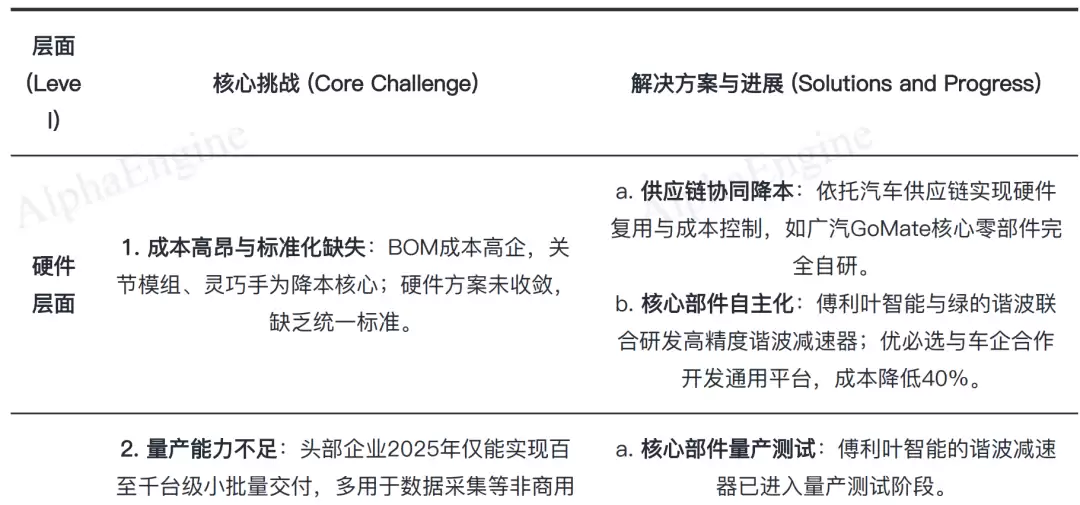 当前,产业正通过供应链协同、核心部件自主化、大模型创新及开源生态构建等方式,加速攻克上述难题,推动商业化落地。