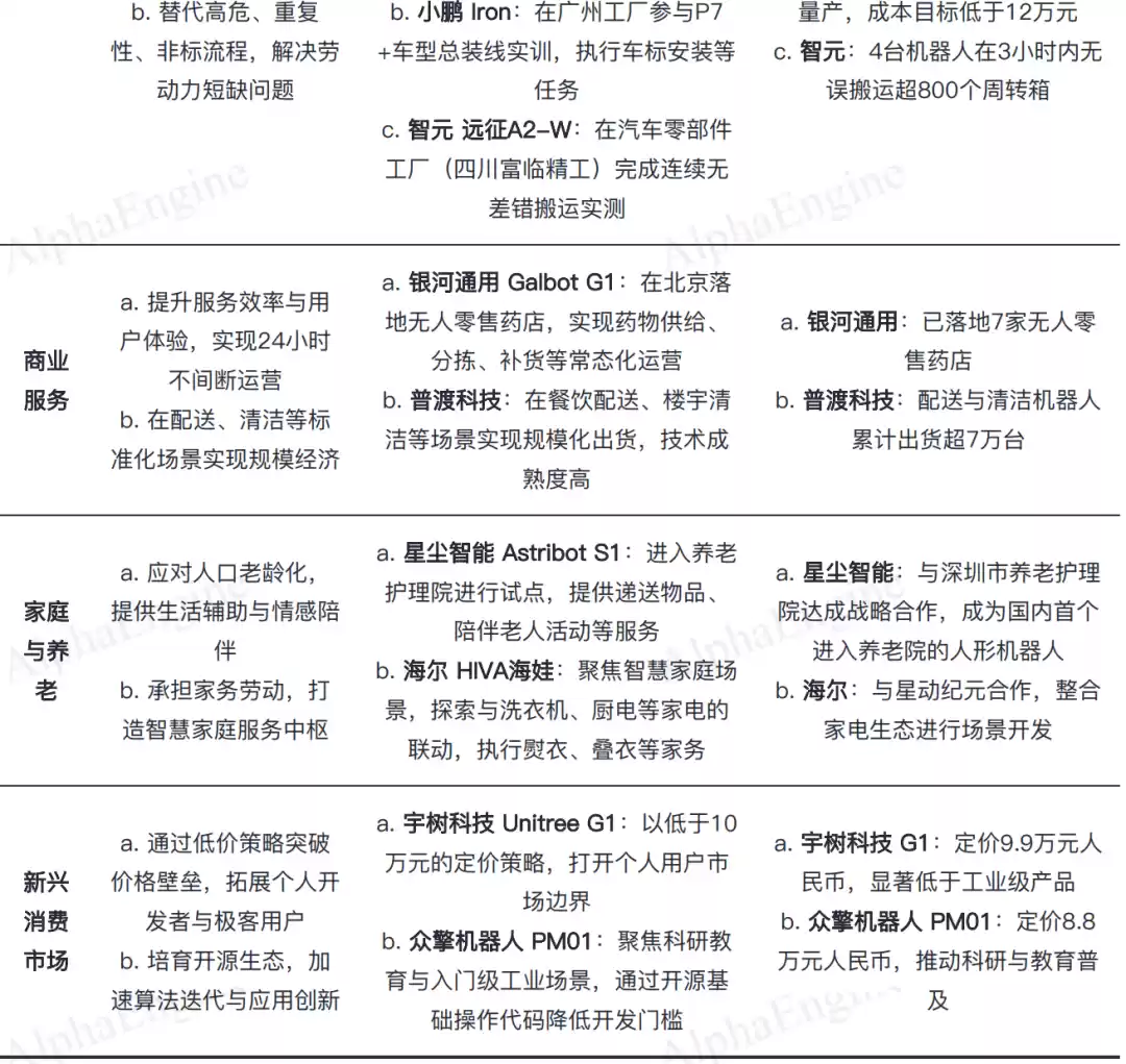 人形机器人产业化遵循“工业制造→商业服务→家庭服务”的场景递进路径。