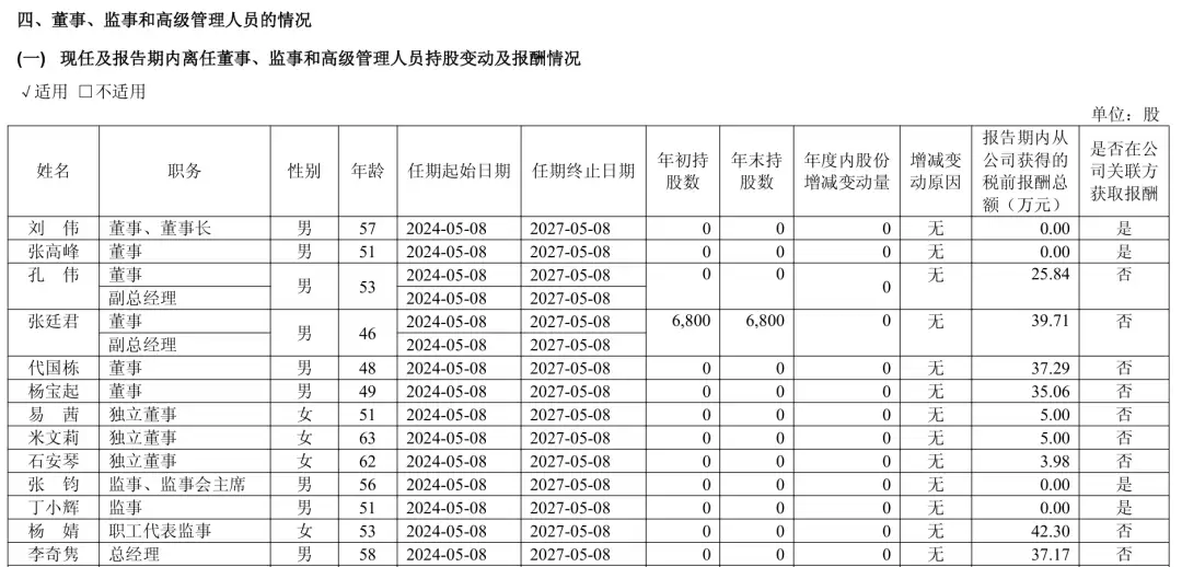 根据公告,董事长刘伟辞去了包括董事长在内的所有董事会职务,总经理李奇隽也卸任全部行政职务,改由副总经理张延君暂代。值得注意的是,58岁的刘伟和59岁的李奇隽原定任期都到2027年5月截止。公司2024年报显示,刘伟去年未领取薪酬,李奇隽的税前报酬为37.17万元。