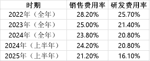 销售费用率和研发费用率对比,来源:招股书