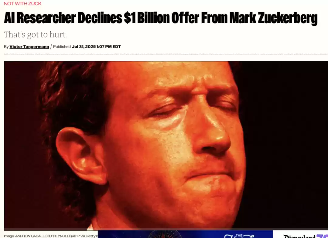 顶级人才关系到公司的技术研发实力,更直接关系到AI大战的实力,关系到科技巨头们的市场估值。因此,各家公司都将AI人才视为了核心竞争力,诸多超级大佬们更是直接在社交平台上挖人。根据媒体报道,扎克伯格甚至亲自出马挖OpenAI的研究负责人马克·陈,开口就是“十亿美元你愿意考虑一下吗?”