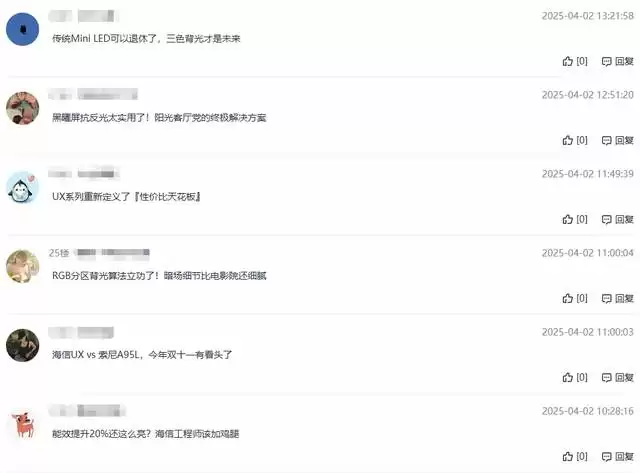 在评论区也有用户直言,RGB 分区背光在暗场表现“比电影院还细腻”,而在强光环境下则能有效消除底灰,让画面对比更干净。类似的声音在讨论区屡见不鲜,说明这种方案确实在用户体验层面打动了观众,这也解释了厂商为何敢用“终极画质”来形容它。