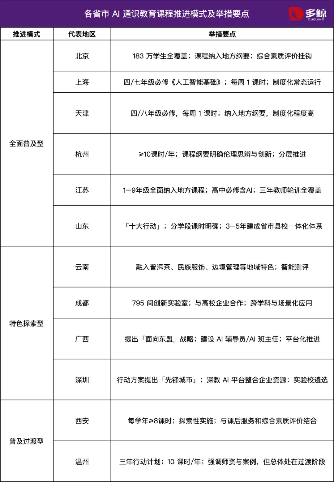 虽然时间上大多集中在 2025 年秋季学期,但不同地区在推进方式上体现出鲜明的共性与差异。