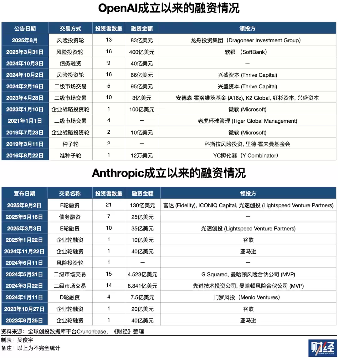 今年8月和9月,OpenAI和Anthropic接连完成新一轮融资,它们分别成为全球第三、第四大独角兽。