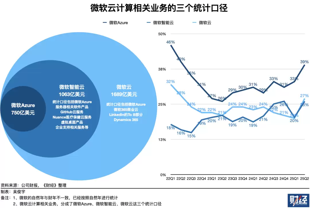 微软在云计算赛道另一个无法忽略的优势是,它拥有“水桶型”的产品线。它们被统称为——“微软云”,2025财年营收1689亿美元,同比增长26.3%。