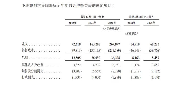 具体来看,根据招股书中的财务数据,在2024年、2024年和2024年,奇瑞汽车的收入分别为926.18亿、1632.05亿和2698.97亿人民币,相应的净利润分别为58.06亿、104.44亿和143.34亿。整体毛利率,分别为13.8%、16%、13.5%及12.4%。