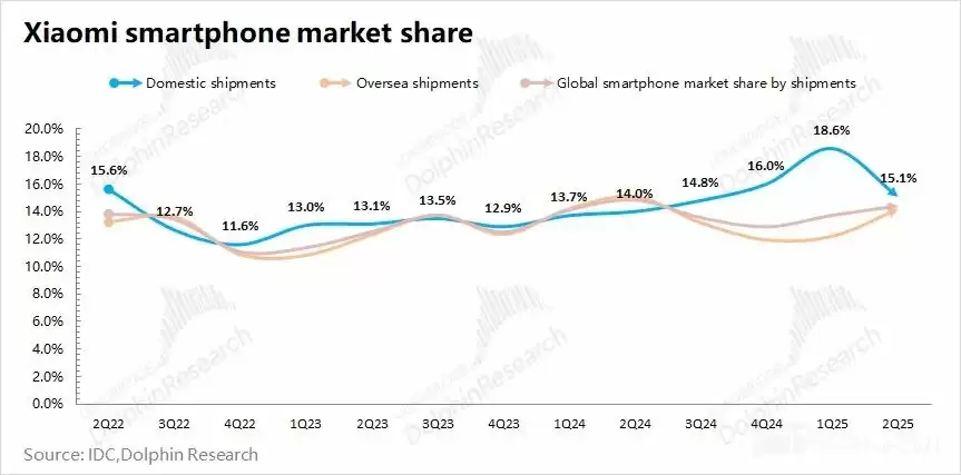 a)小米在国内市场有所压力:从小米手机市占率变化来看,市场份额从去年下半年开始出现明显提升。由于小米手机的价格基本都落在国补价格带内,受国补政策带动的效果明显。而随着国补效果减弱,小米手机在国内市场的份额又有回落;