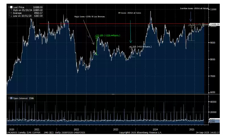 他预计,未来12至15个月内,市场将因此损失50万吨铜供应,并可能进一步损失100至200万吨。他形容这一冲击相当于“Cobre、Komao和Los Bronces三大铜矿同时停产”。