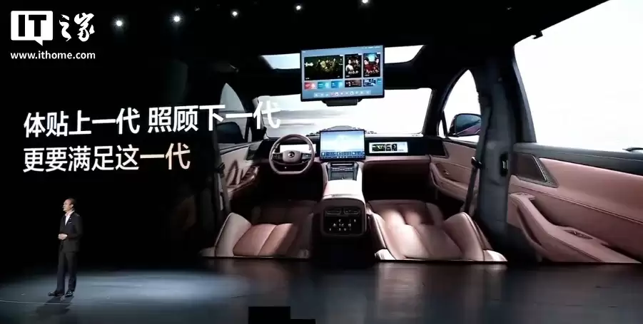 内饰方面,双幅方向盘与49处收纳空间彰显人性化设计。后排17.3英寸吸顶屏支持DeepSeek AI交互,双50W无线快充满足现代数字生活需求。三排六座布局配零重力按摩座椅,独立温控系统确保每位乘客舒适体验。
