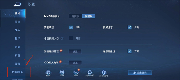 3、在设置界面中,向下滑动找到"功能/隐私"选项并点击进入