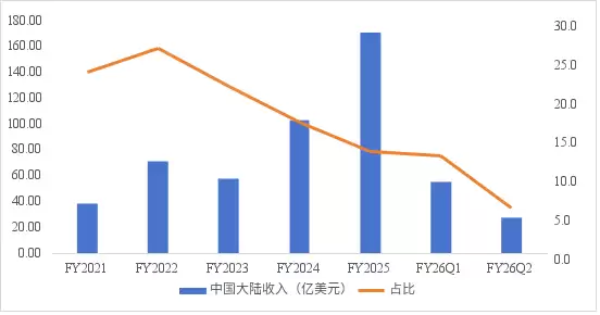 图:英伟达中国大陆收入及占比数据来源:wind,整理