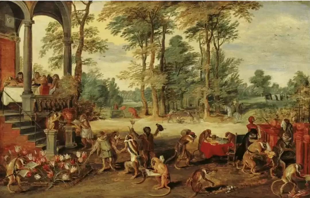 (扬·布吕赫尔二世(Jan Brueghel the Younger),《郁金香狂热的寓言》,1640年)