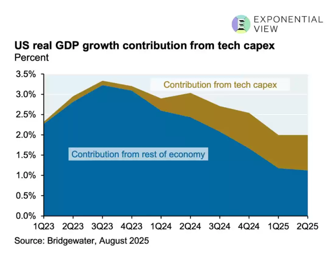 衡量经济压力的一个方法,是观察某项投资占GDP的比重——也就是全国产出中有多大比例被投入同一个技术前沿领域。这比例粗略但很能说明问题:它显示整个经济有多大程度押注在单一技术上。