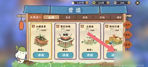 当你进入建造模式后,在选择需要升级的建筑物时,点击左下角出现的【详情】选项