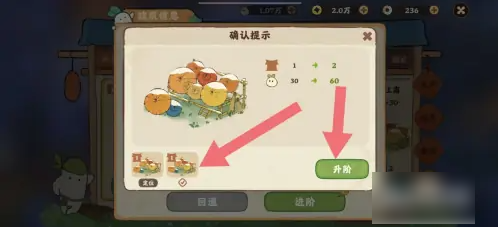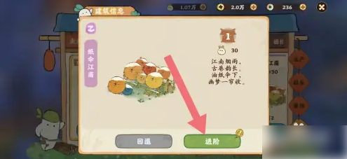 在弹出的建筑信息面板中,你会看到明显的【进阶】按钮,点击它进入升级界面