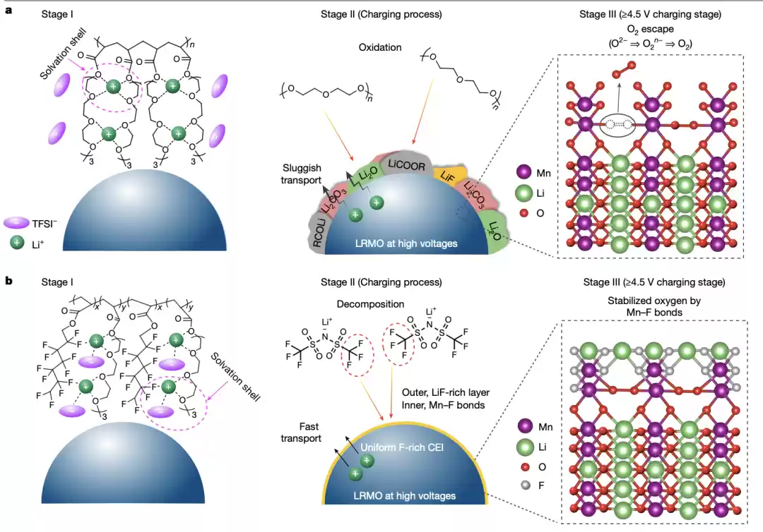 通过一种主动设计的聚合物电解质,从根本上解决了LRMO正极的内在不稳定性,该团队为锂电池的性能开启了一个全新的维度。