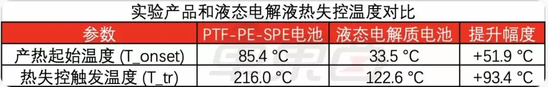 ▲实验产品和液态电解液热失控温度对比(数据来源:清华大学)