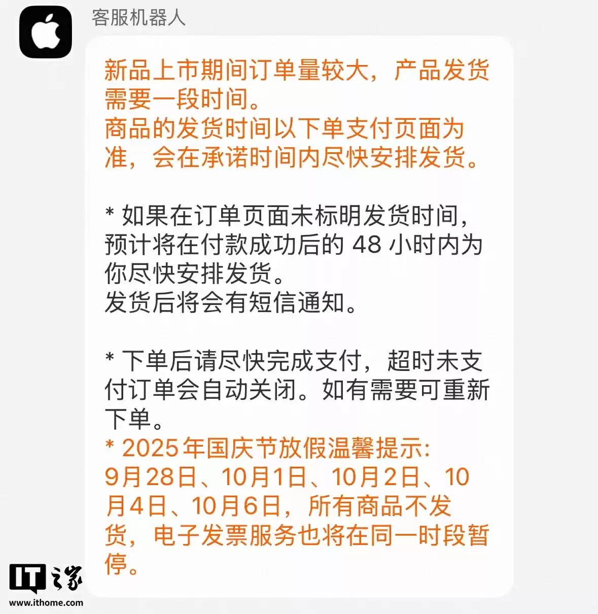 iPhone 17发货调整:苹果天猫旗舰店国庆中秋安排