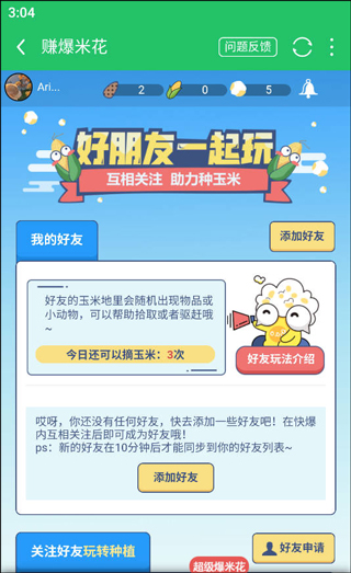 互相关注的好友可以互相照料庄园,这将显著提升玉米生长速度。